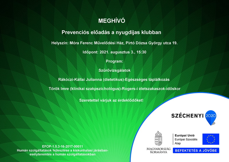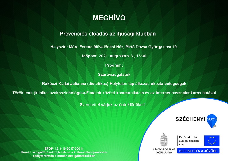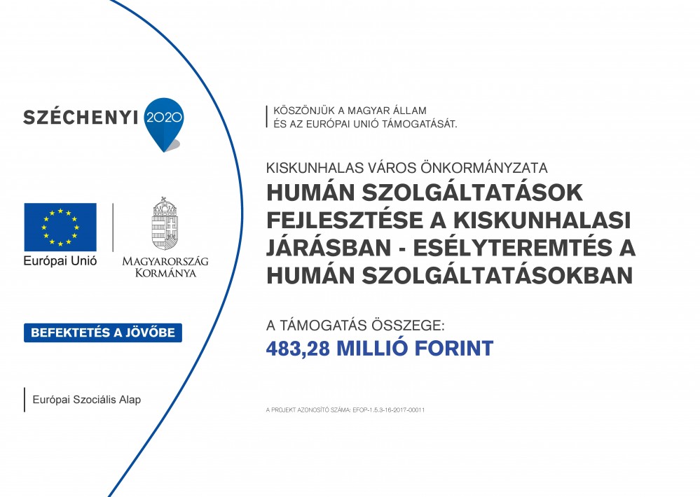 A projekt címe: Humán szolgáltatások fejlesztése a kiskunhalasi járásban - Esélyteremtés a humán szolgáltatásokban